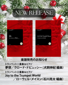 株式会社ブロウミュージックより、トランペットアンサンブルとピアノのためにアレンジされた新作楽譜を2冊発売いたしました。
